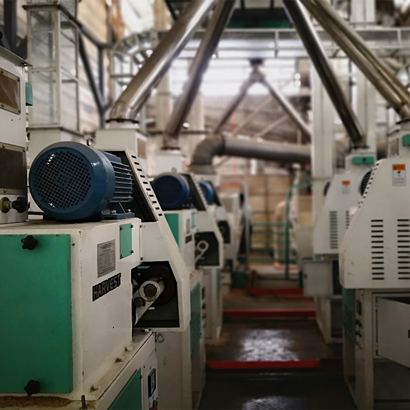 The low-noise drive is adopted to drive the rubber roller directly, and the low-speed manual and automatic interchange mode of the rubber roller to replace the traditional gearbox transmission technology, without oil leakage, which meets the high require ments of national environmental protection. Adopt the latest frequency conversion energy saving technology with more stable performance. Through the flexible control of frequency conversion variable speed under different grain conditions, the optimal line speed of fast and slow rollers can be achieved, thus can reducing rubber roller lost, reducing borken rate, and reduc ing energy consumption, and great improve husk rate and capacity of the equipment.