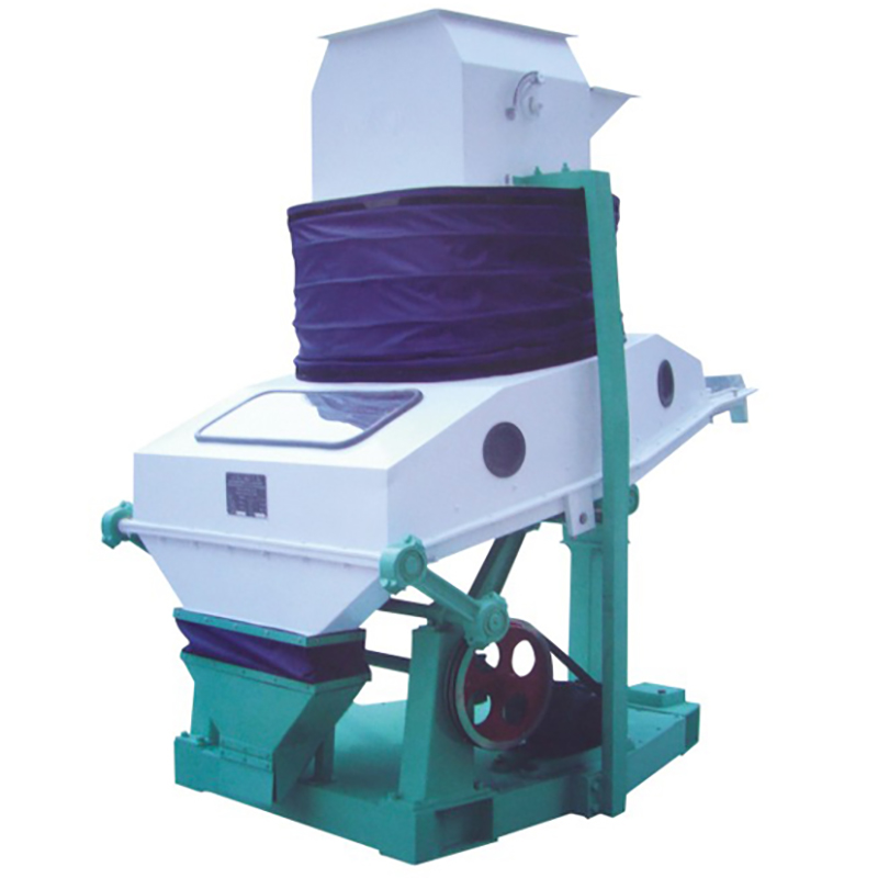 Working principle This machine will separate stones from raw material when the mixture flow down on screen, the airflow passed the screen blowing the raw grain, and keep it suspending, Because of heavier gravity the stones will sink under the grain and stay on screen, Under the action of reciprocating screen, The stones will move to the high side of screen, and the raw grain will move to opposite direction.